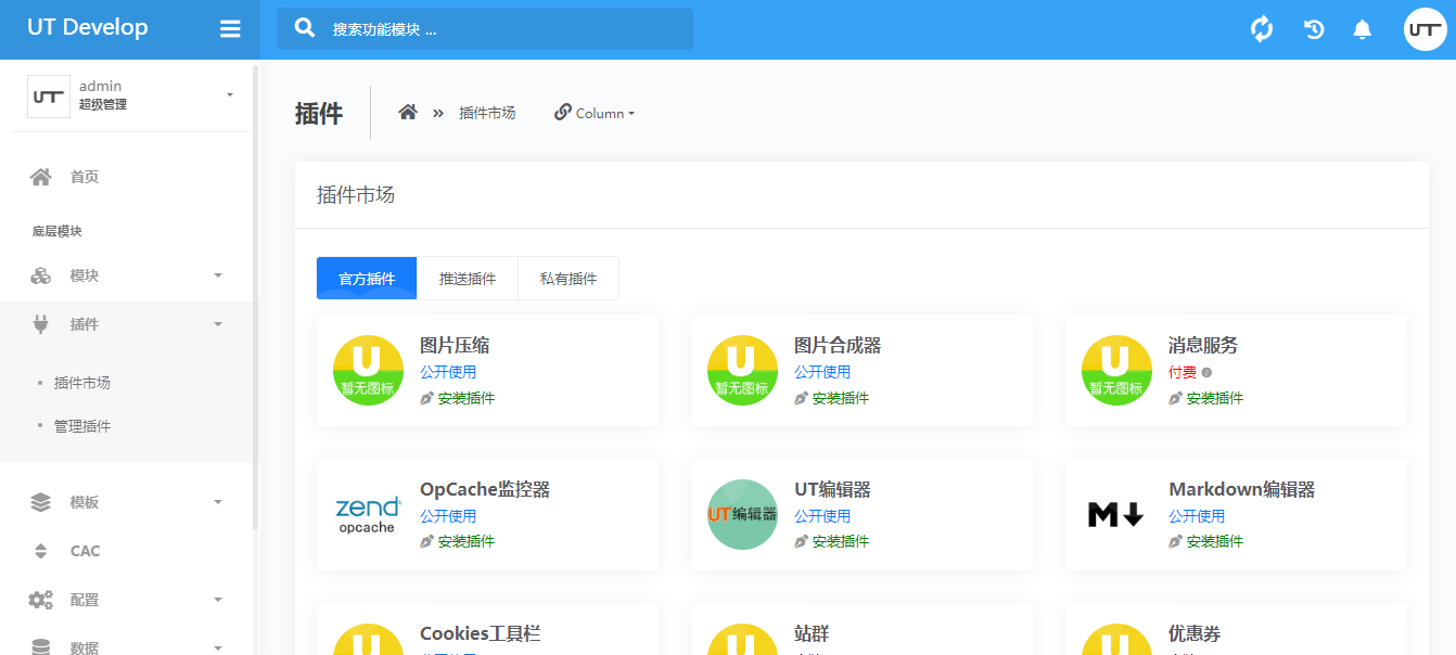 插件分为:官方插件、推送插件、私有插件