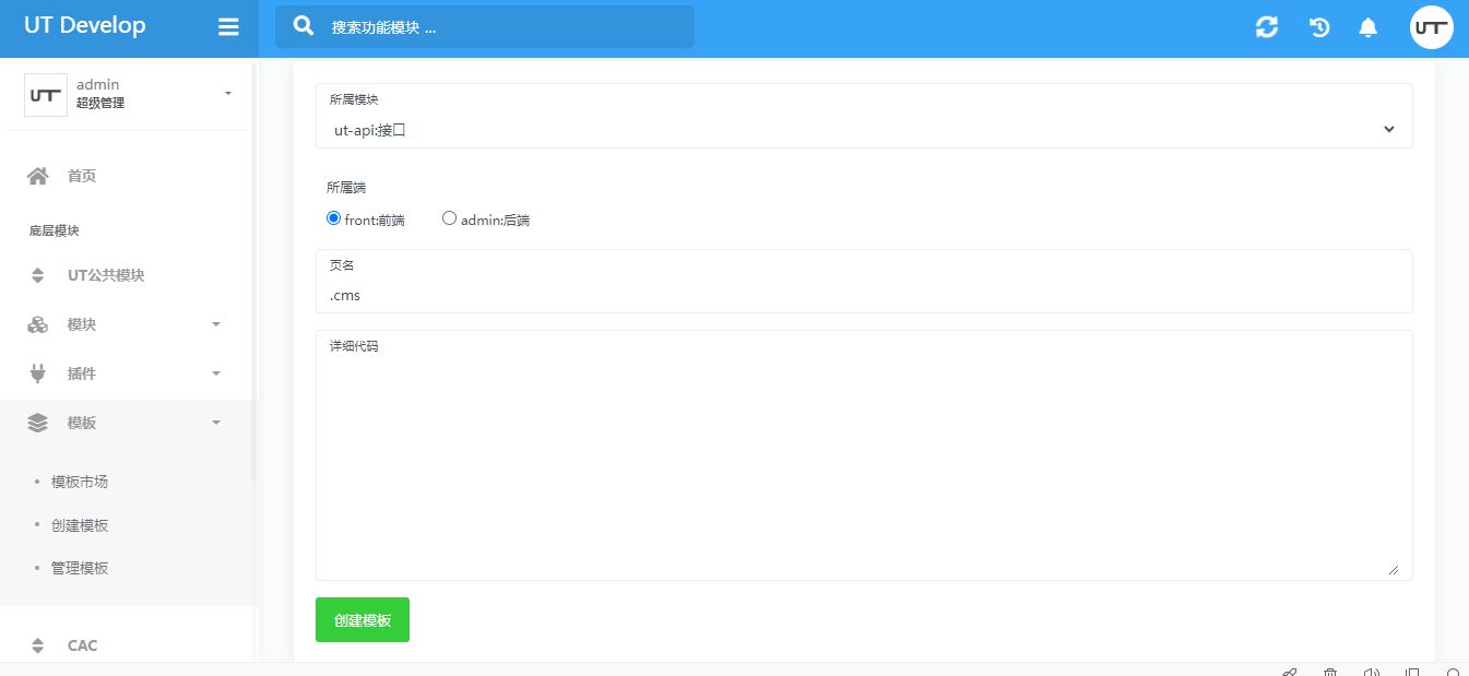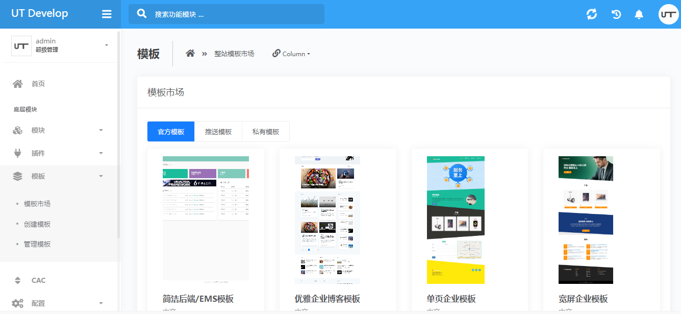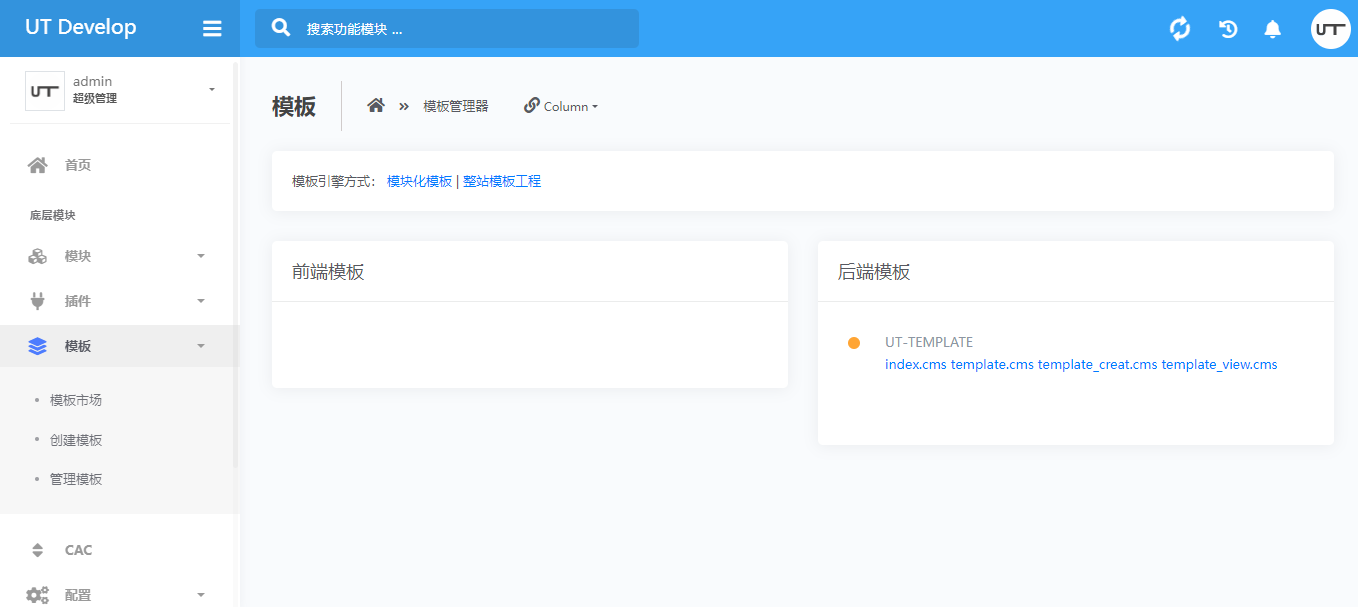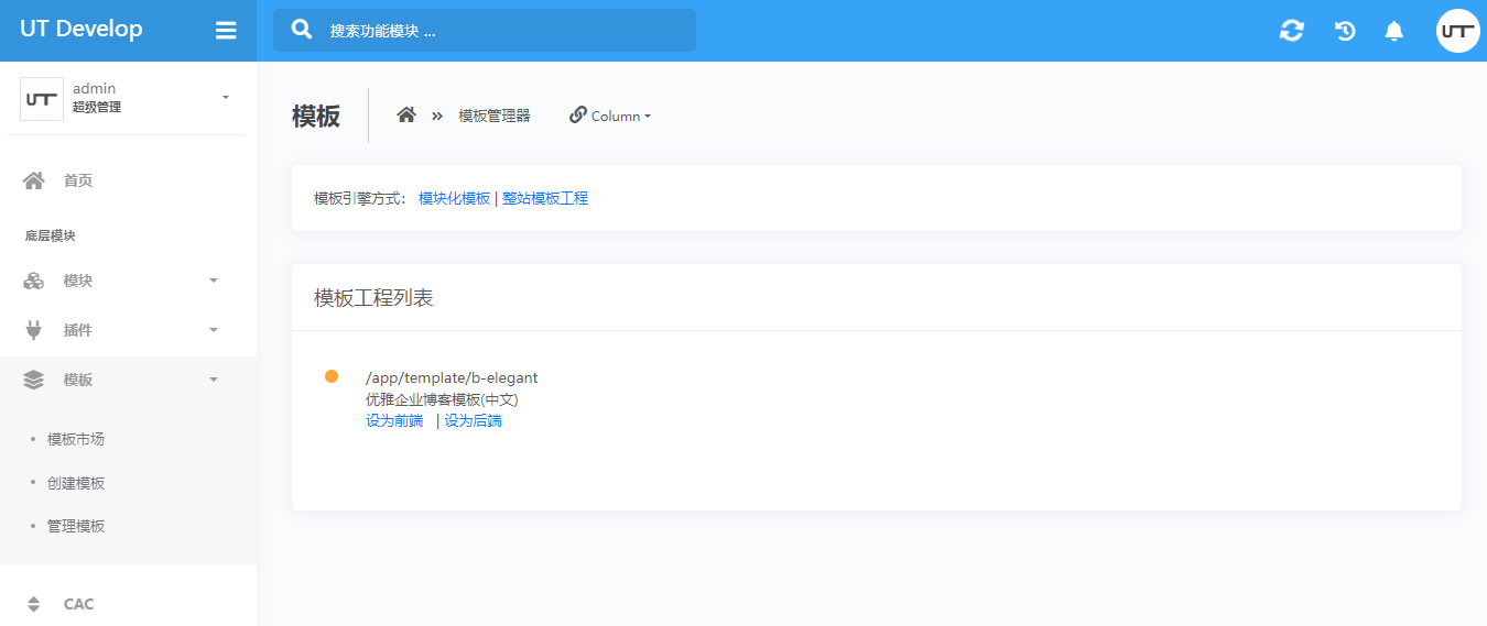 整站模板工程即完整的一套模板可自由切换(可分前后端模板),而模块化模板则是每个模块皆可自带的多样化模板。你可以根据自己的需求选用整站模板工程或是模块自带的模板。